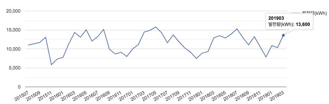 제 발전소의 3월 발전량은 약 13,600kWh 예상됩니다.