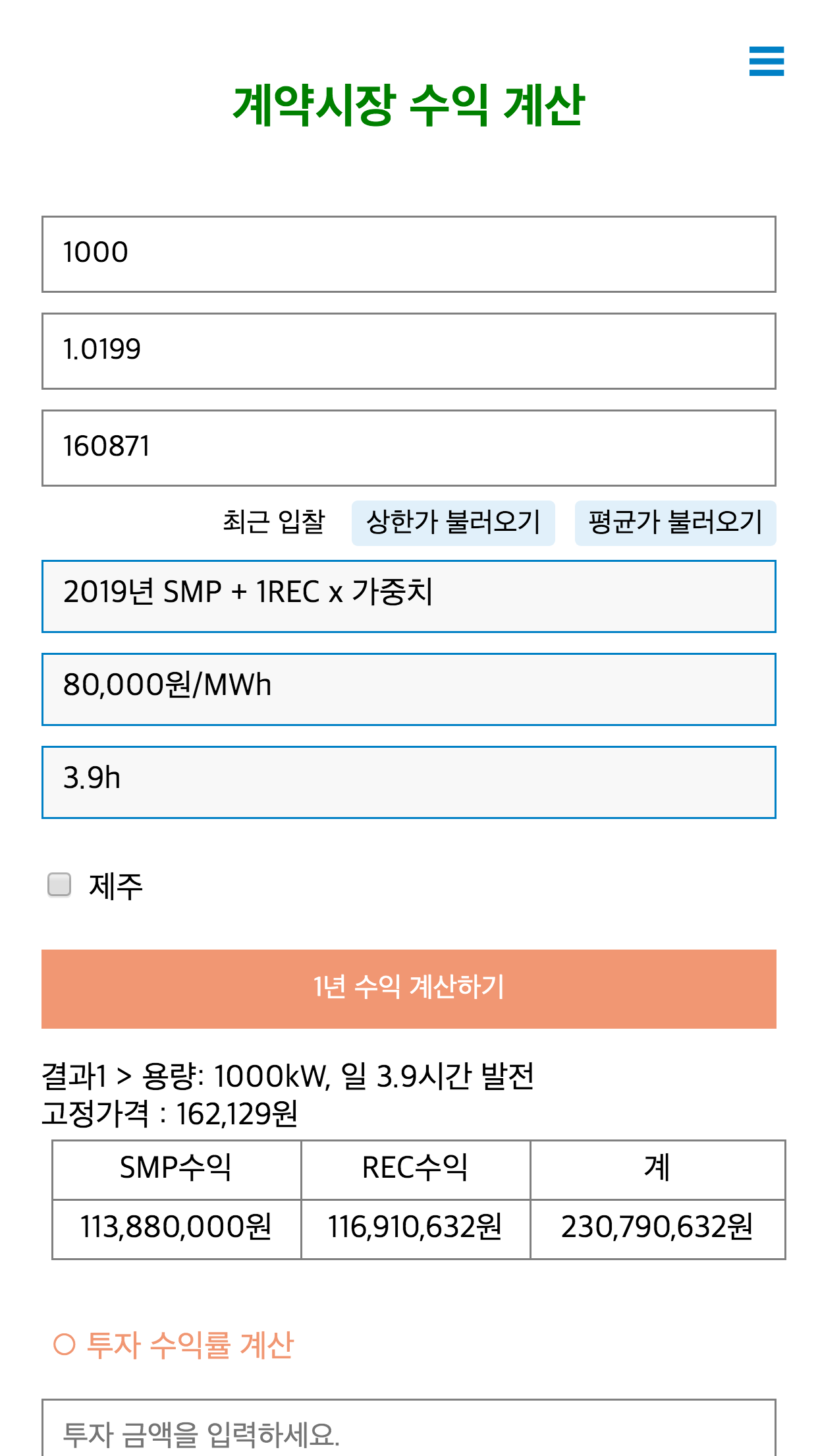 다음은 1MW 발전소 수익을 계산해 보겠습니다.