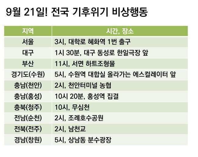 9월 21일 기후위기비상행동에 지지하고 참여해주세요! 기후변화를 막는 행동에 함께 해주세요