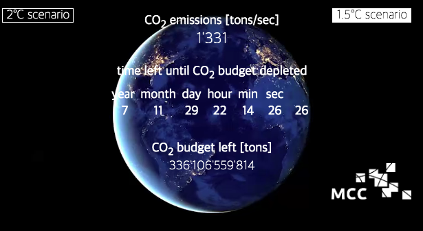 전 세계는 초당 1,331톤의 이산화탄소를 배출하고 있고 8년이면 모두 소진하게 된다.
