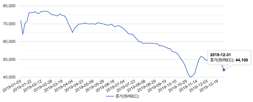 태양광 REC 현물시장 가격 동향, 차트 분석