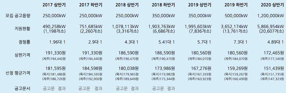 | 2020년 상반기 RPS 고정가격계약 입찰 결과 수익 분석 (0) | 2020.05.29 |