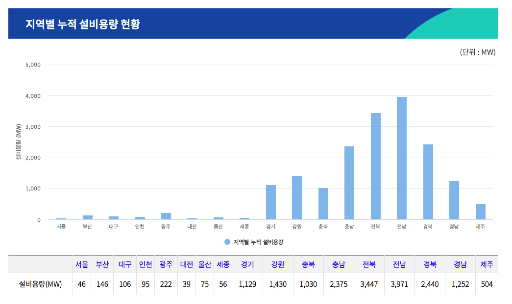지역별 누적 설비용량도 비교 가능하다