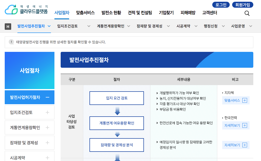 그외 태양광 발전 사업 절차 안내와 맞춤 서비스를 제공해 준다.