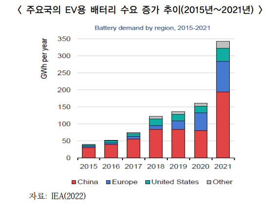EV용 배터리 수요도 2020년 대비 2배 이상 증가