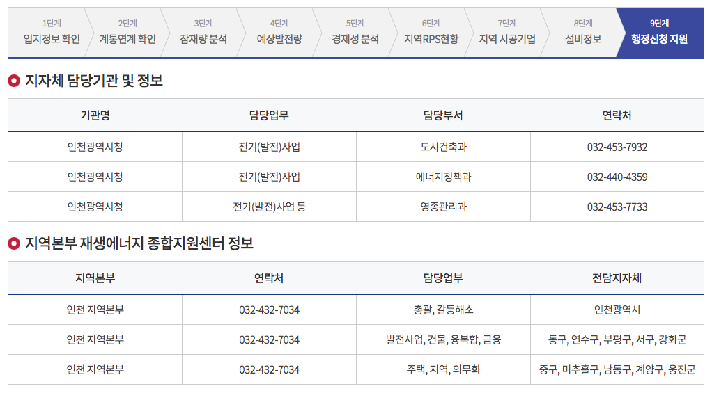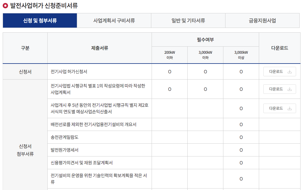 지자체 담당기관 및 발전사업 허가 신청 준비 서류 등을 확인할 수 있습니다.